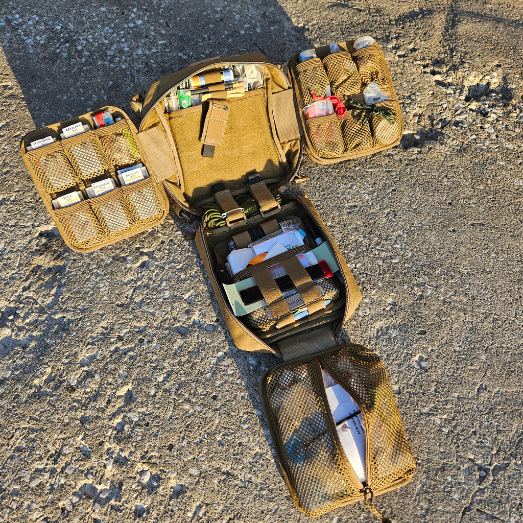 - Weep hole, extended pull tabs, extra loops for items, and two 'multi straps' like previous version.