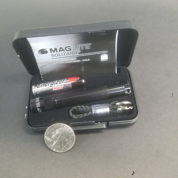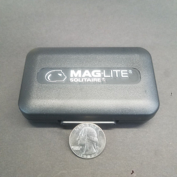 Weighing less than one ounce (with battery) and about three inches in length, the Solitaire 1-Cell AAA flashlight offers the same precision engineering and craftsmanship found in every Mag-Lite flashlight. With its unique shape, the Solitaire flashlight fits conveniently into pockets, purses, attache cases, etc.
