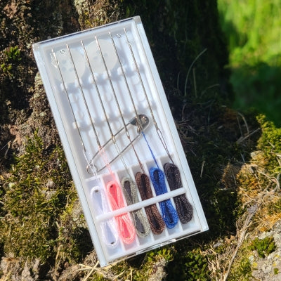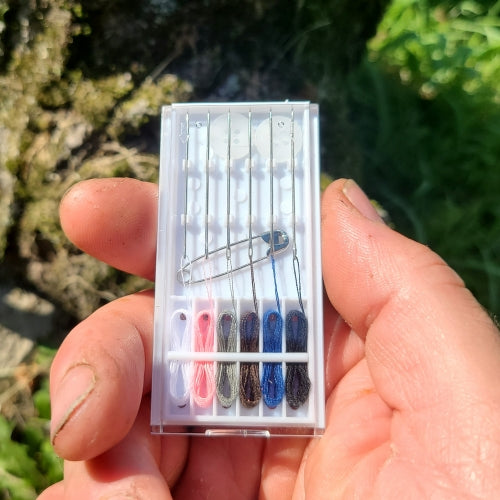 Low profile and convenient. The ACW Sewing kit has 6 pre-strung needles with thread ready to go! Just pull out a needle and sew. Also comes with a couple of random buttons and a safety pin. We offer these little sewing kits because they have proven so useful.